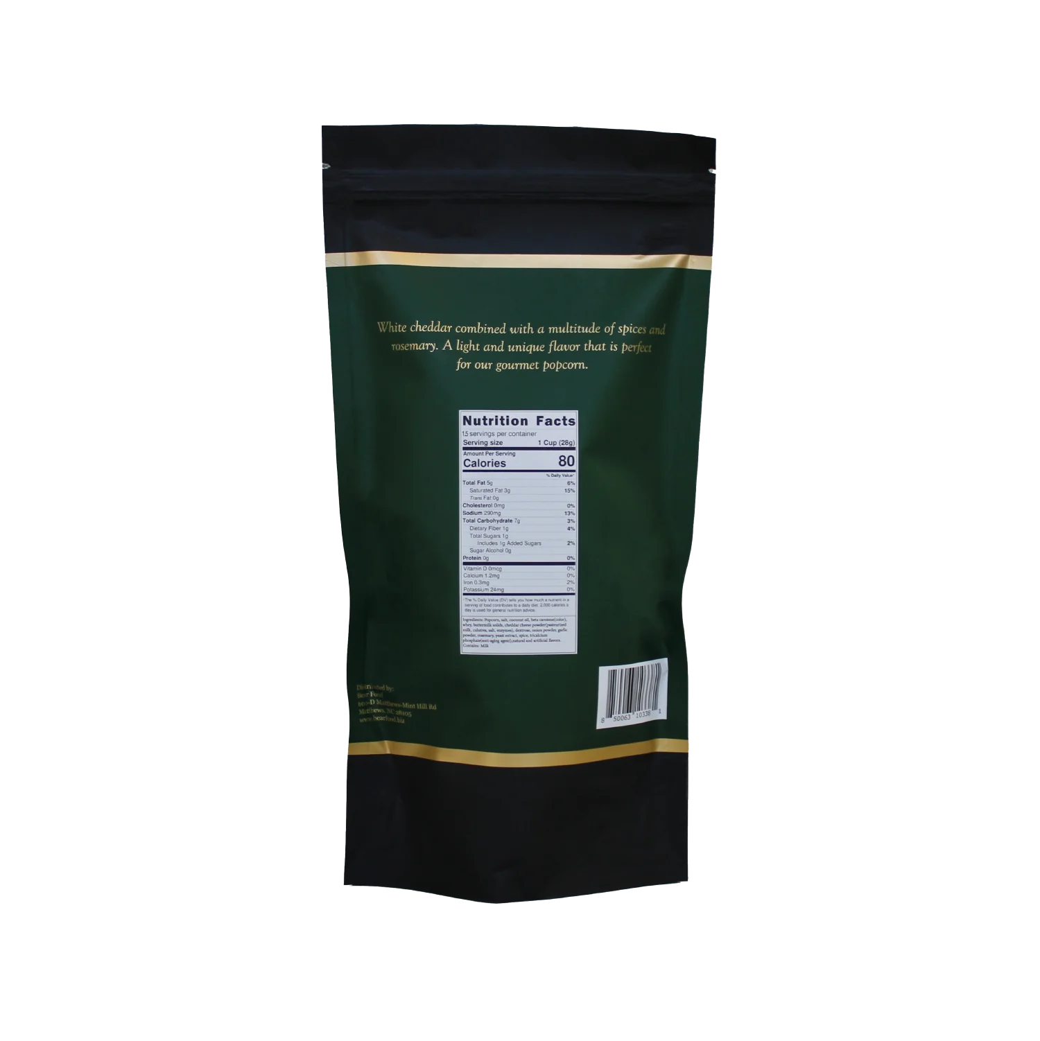 A delicious white cheddar combined with a multitude of spices and rosemary. A light and unique flavor perfect for our gourmet popcorn!
