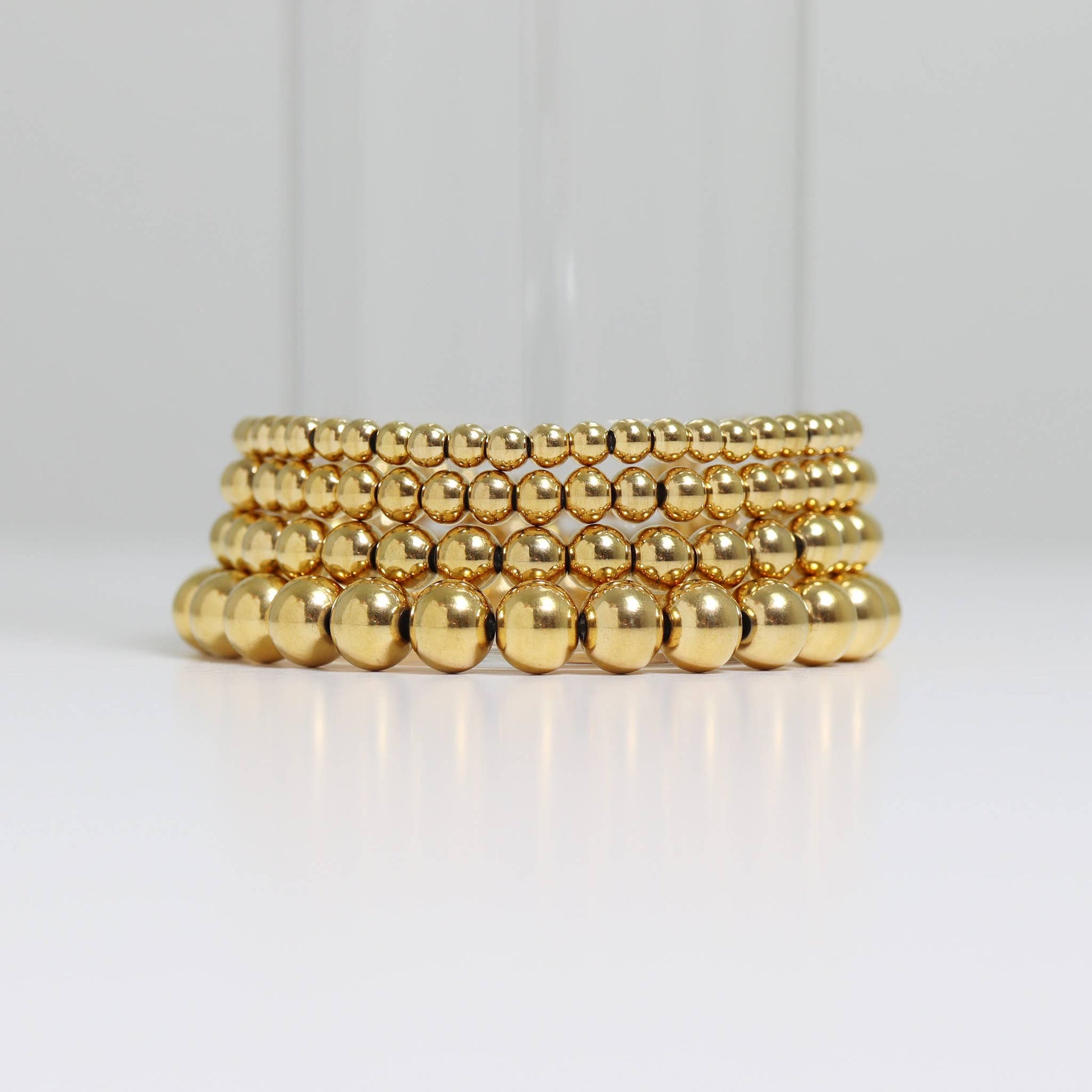 The 18K Gold PVD Stainless Steel Beaded Stretch Bracelet is one of the most versatile bracelets on the market. The stretch fit makes it easy to wear for various wrist sizes. The classic all metal design allows it to work with casual outfits but is also easy to wear with dressier looks. Wear it on its own, pair it with other sized stretch bracelets, or with other colors for a custom looking stack. • 100% Waterproof, non-tarnish, hypoallergenic • Premium 18K Gold PVD stainless steel •
