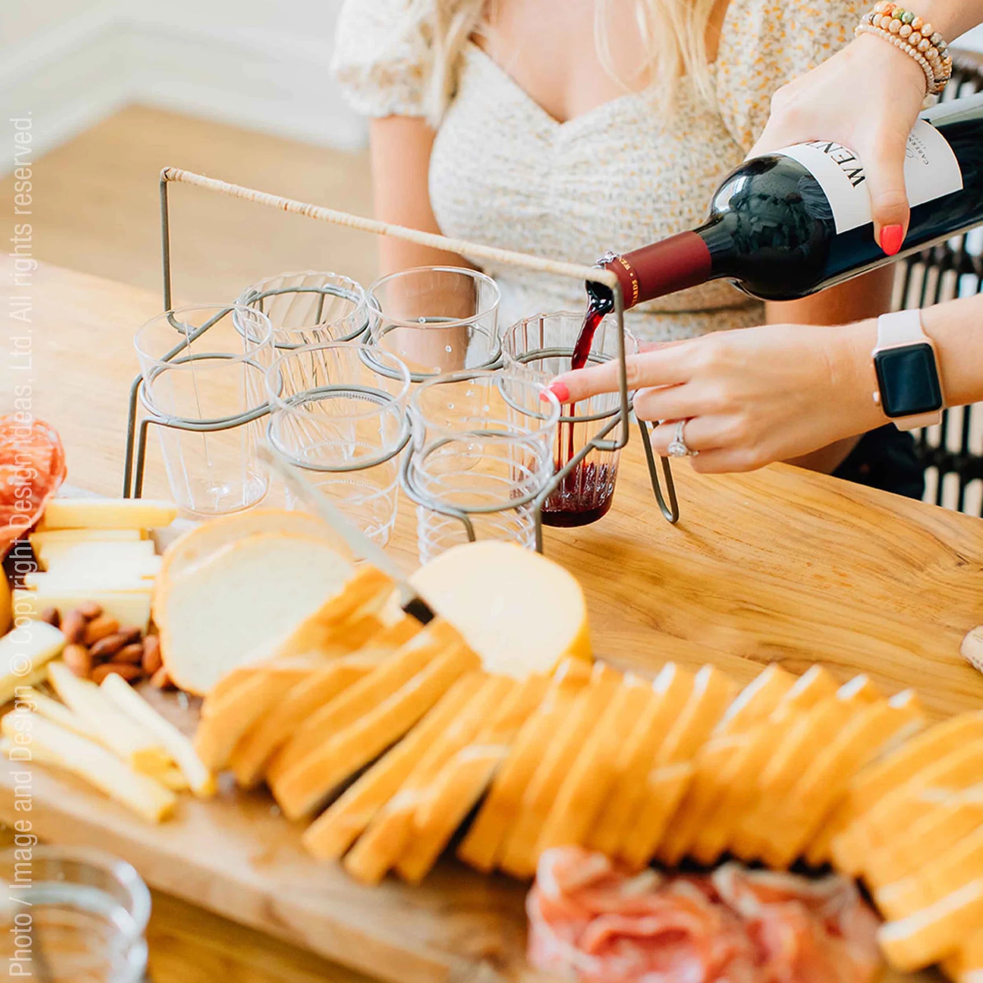 This elegant celebration drinkware begins life in crystal clear tubes of glass that a skilled artisan heats and bends over a white hot flame. The decorative surface effects are the final touch; each dot, each textural detail is applied by hand. The ensemble collection affords each guest his or her unique glass. Dishwasher safe