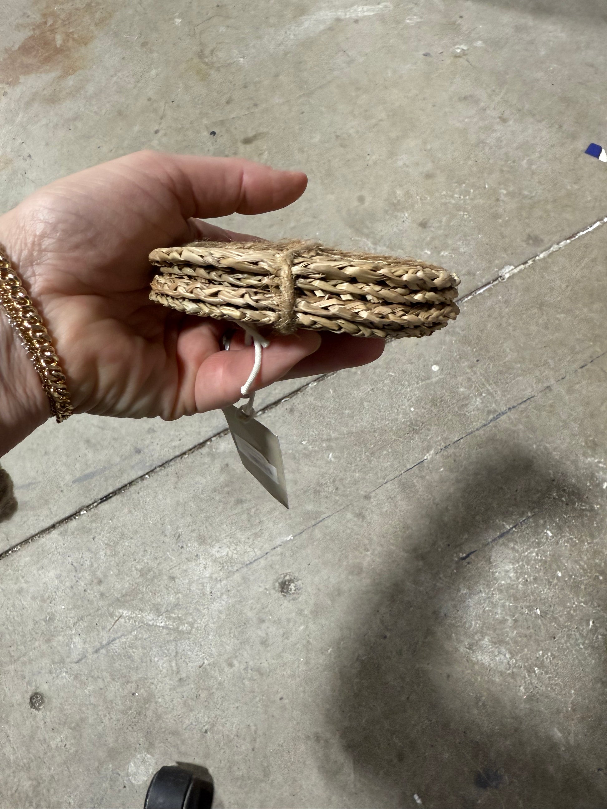 Handcrafted from natural seagrass, this set of four coasters combines sustainable materials with functional elegance. Each coaster features a tightly woven construction that effectively absorbs moisture while protecting your surfaces from water rings and heat marks. The neutral, earthy aesthetic complements any décor style, from modern minimalist to rustic farmhouse. Lightweight yet durable, these coasters are ideal for daily use on coffee tables, nightstands, or bar areas. A practical addition to any home that values both style and environmental responsibility.