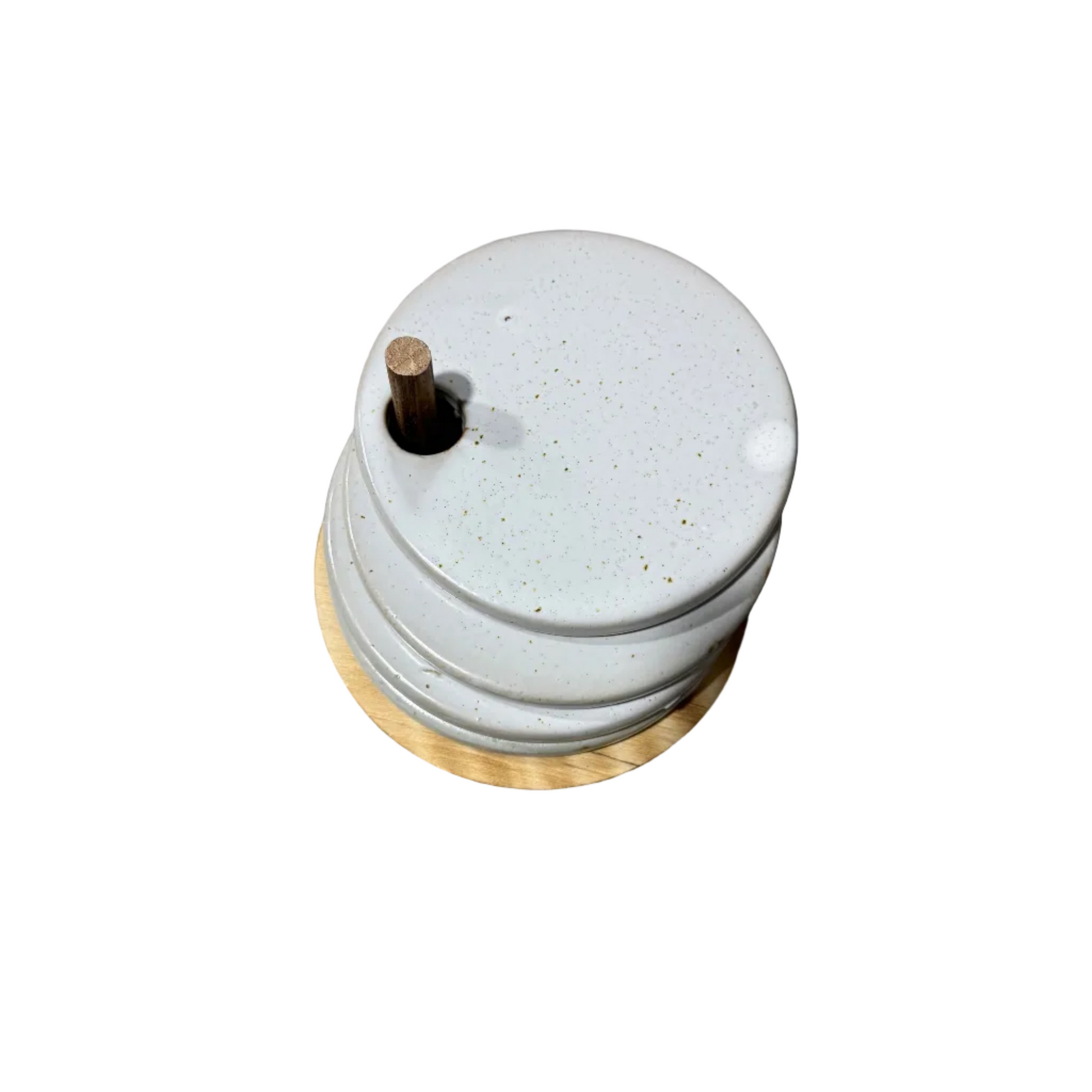 Handcrafted stoneware coasters featuring a distinctive reactive glaze that creates unique color variations on each piece. This set of five coasters arrives with a complementary wood holder, perfect for stylish storage and easy access. The reactive glaze technique produces one-of-a-kind patterns, ensuring no two coasters are identical. Hand wash only to preserve the glaze finish and longevity of these artisanal pieces. An excellent choice for protecting surfaces while adding an artful touch to any room.
