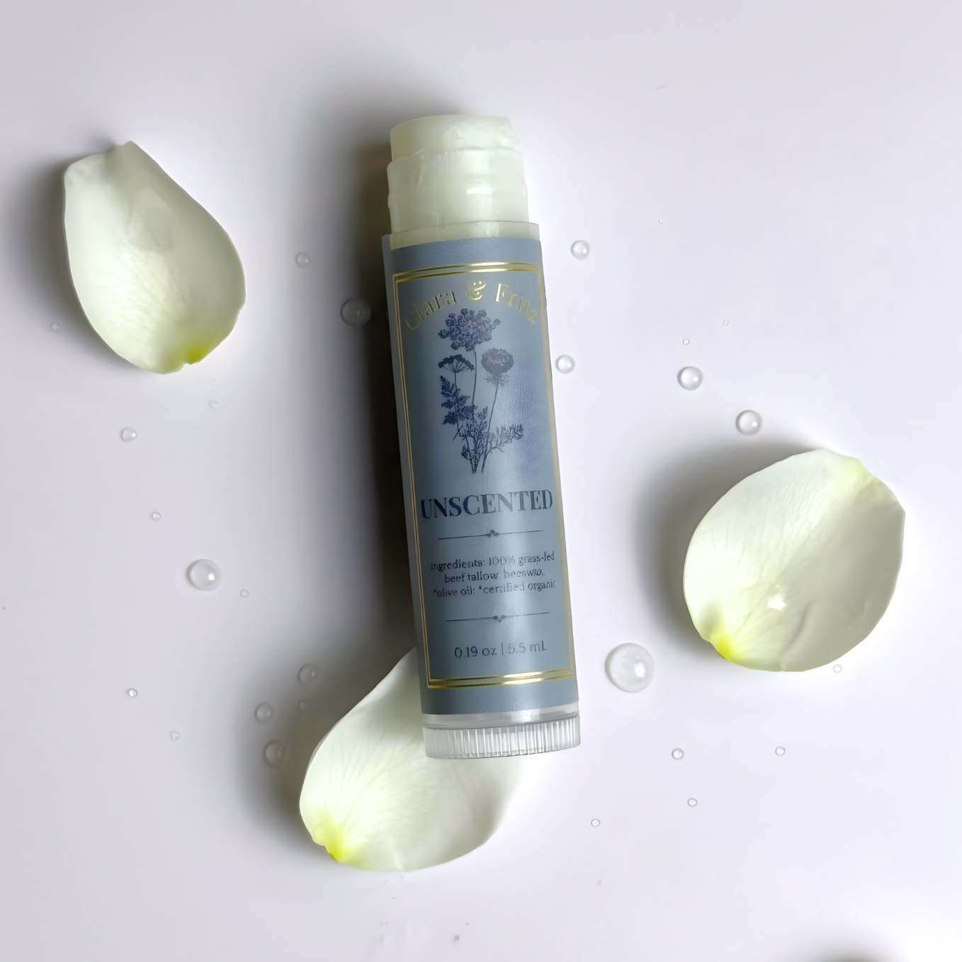 The Best Beef Tallow Lip Balm A moisture-rich balm packed with essential nutrients that deeply hydrate and soothe your lips. With just four simple yet highly effective ingredients, it glides on smoothly leaving a protective layer of hydration and a sheer, satin finish. Formulated for all-day, every wear and all skin types. Clara and Fritz lip balm is hand-poured. Try one in vanilla, orange cream, peppermint, unscented, or all of the above! These are travel-sized so you can take some tallow goodness with you wherever you go. Tallow Lip Balm Ingredients and Benefits: 100% grass-fed and finished beef tallow: Used as a natural skincare for centuries, tallow is easily absorbed and highly compatible with our own skin. Tallow is rich in vitamins A, D, E, K and B12, which can help to promote healthy skin cell growth, reduce inflammation, and prevent premature aging. It's also safe to eat, which is key for skincare that goes on your mouth. organic extra virgin olive oil: Rich in antioxidants and healthy fats